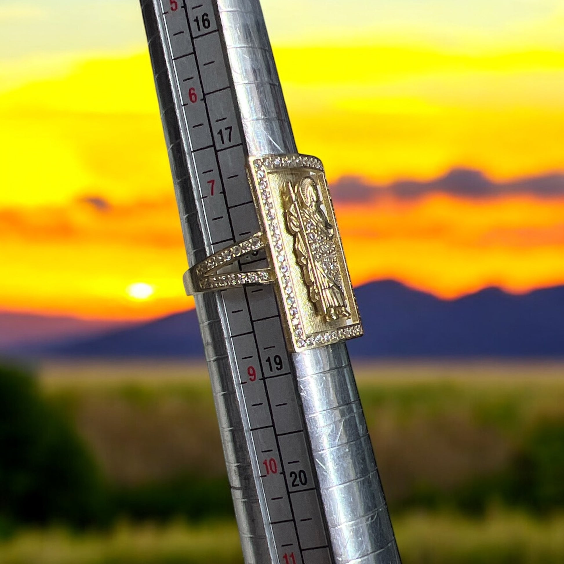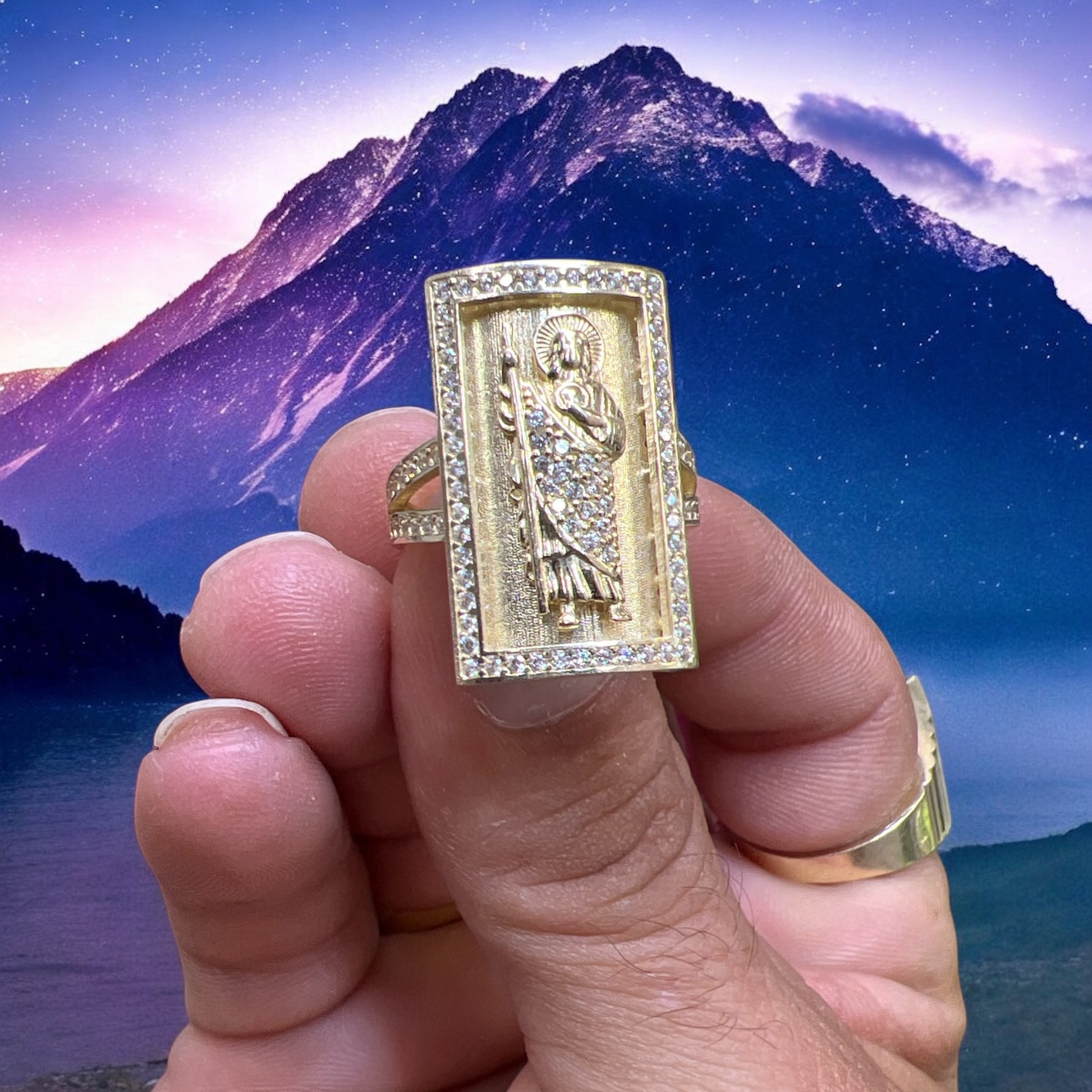 Ring 10k , image of Saint Jude with zirconia, size 8, 4.6g