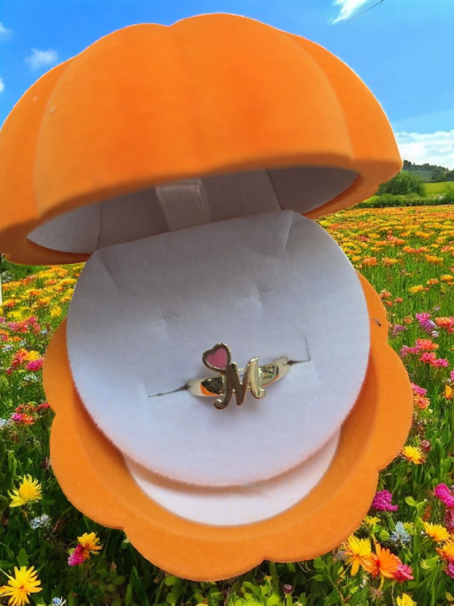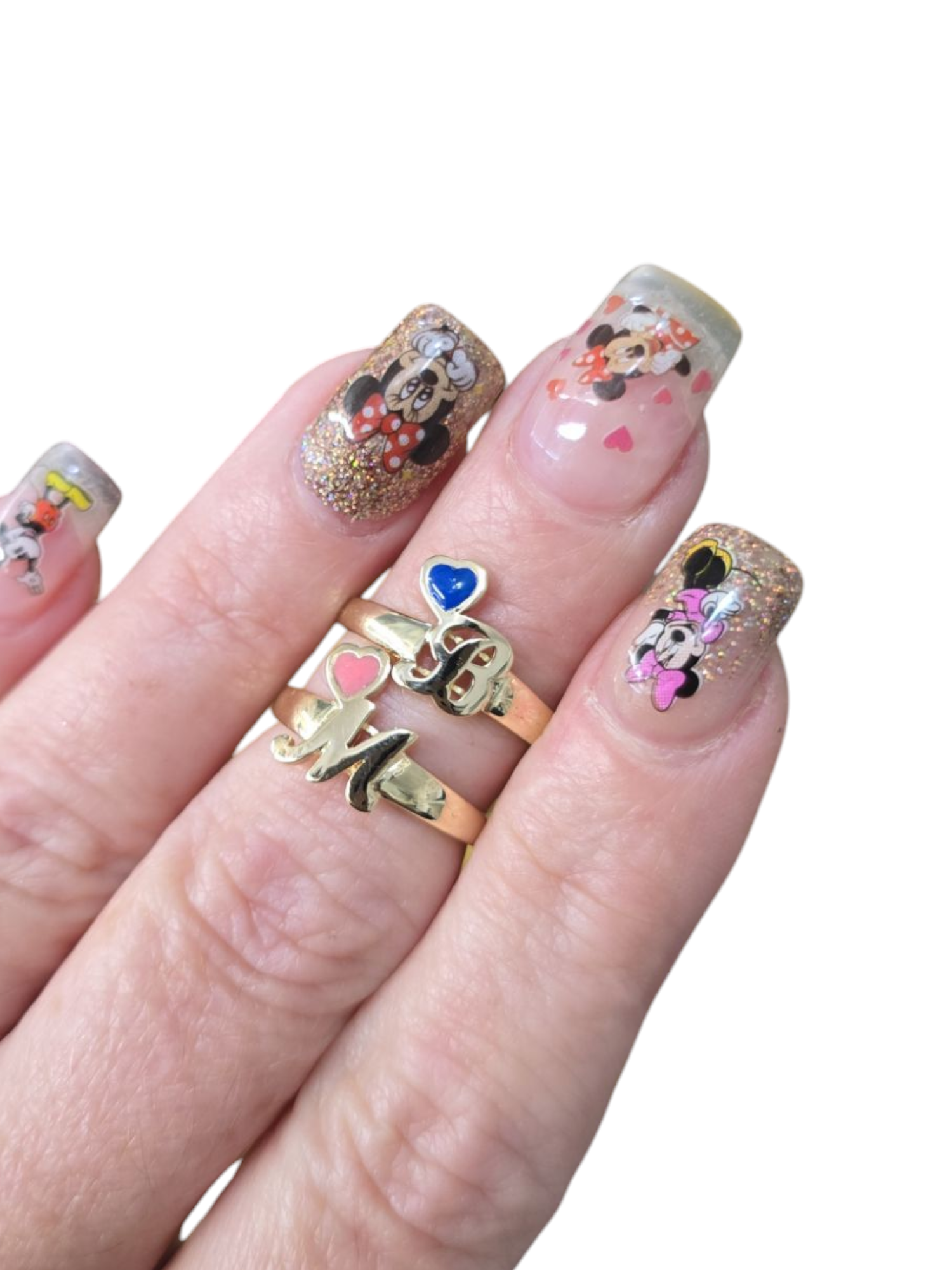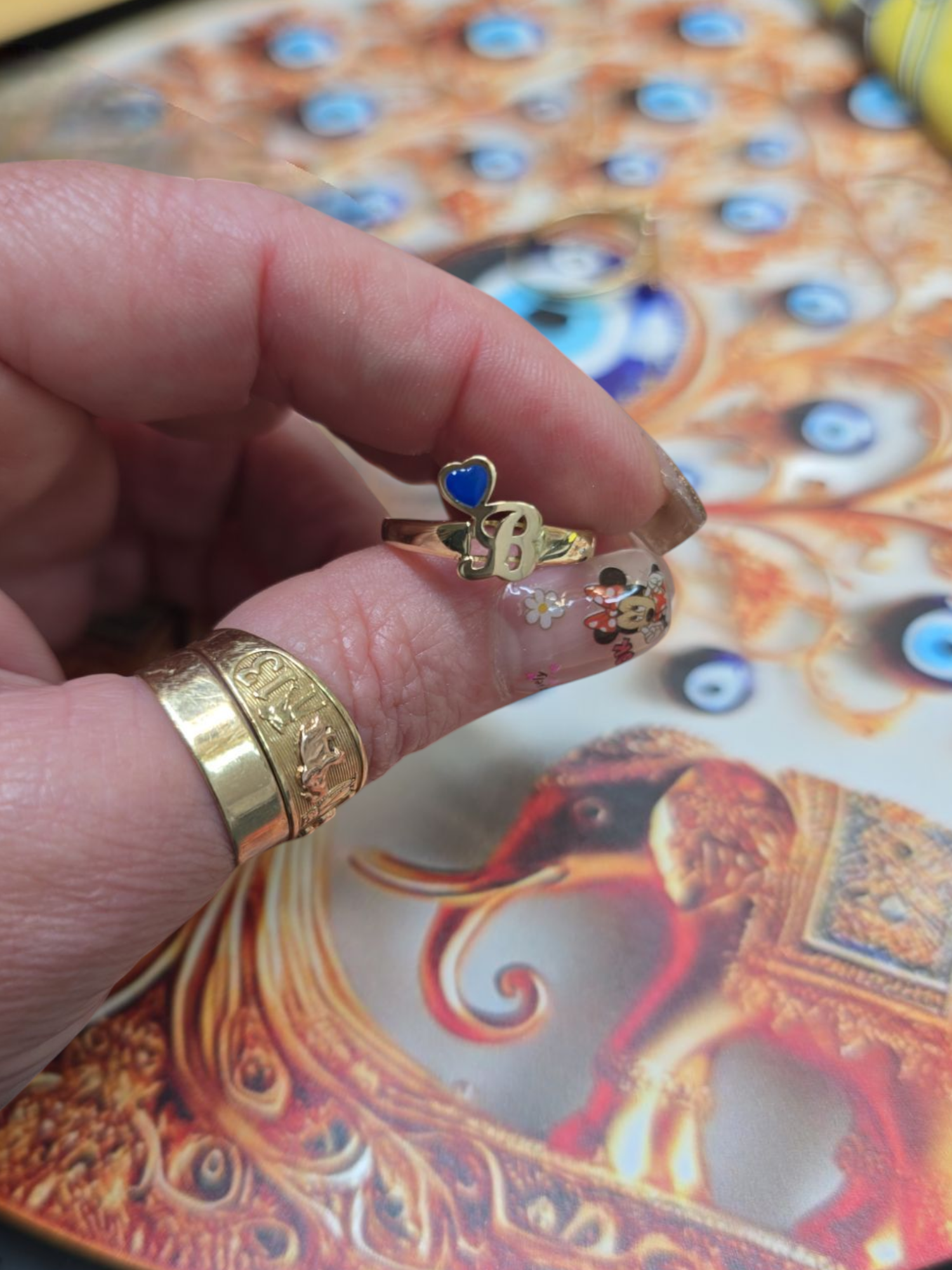 Rings of letters and heart with enamel ,14k this order is personalized for custom your order tex numbers of your order with leter and color the you preference, and size ,we take 15 Day for sent this order !! Thank you