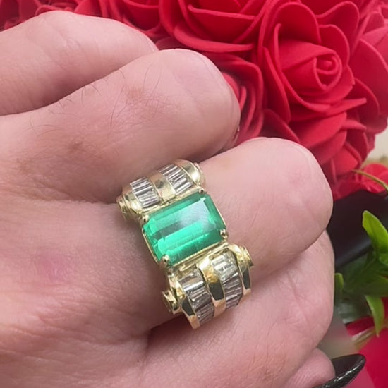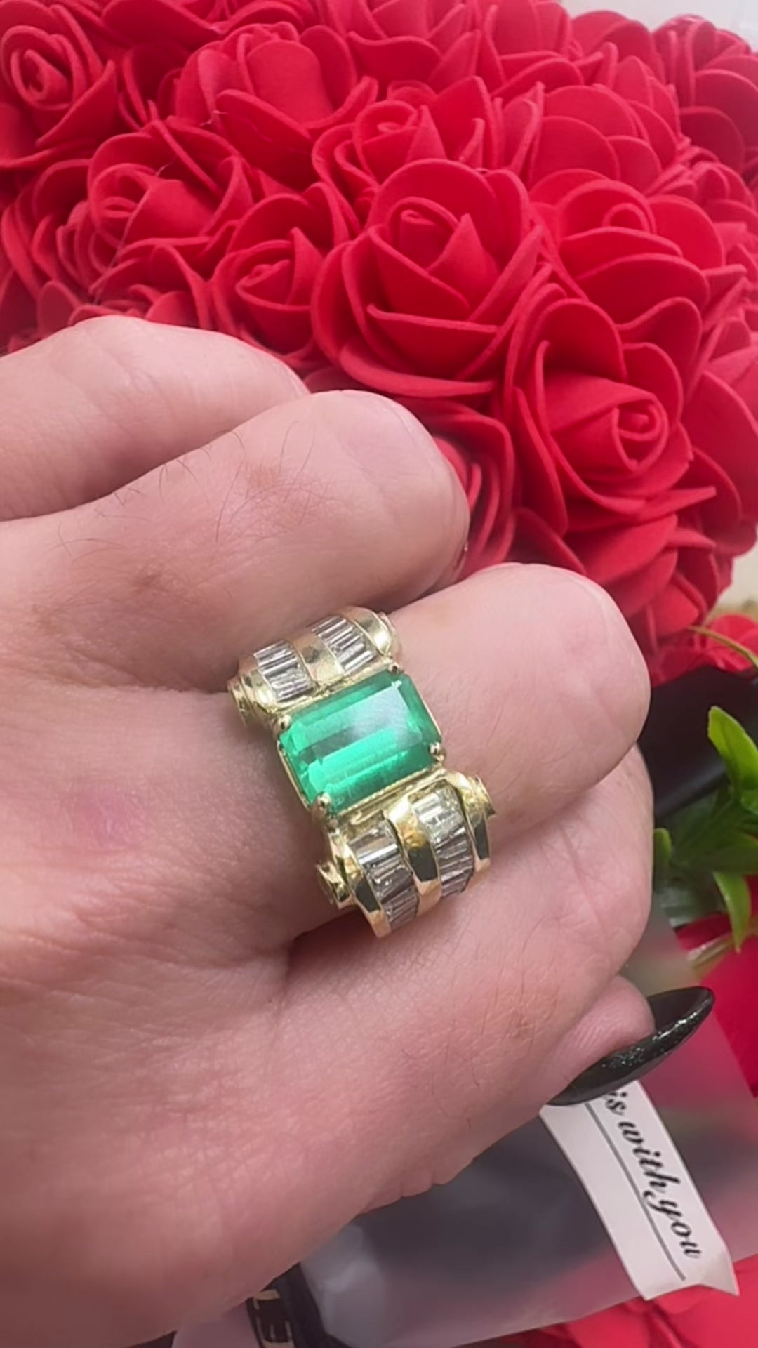 Beautiful rings 14k with natural emerald 2.5ct and natural diamonds! 3ct style bagget Size 7 /